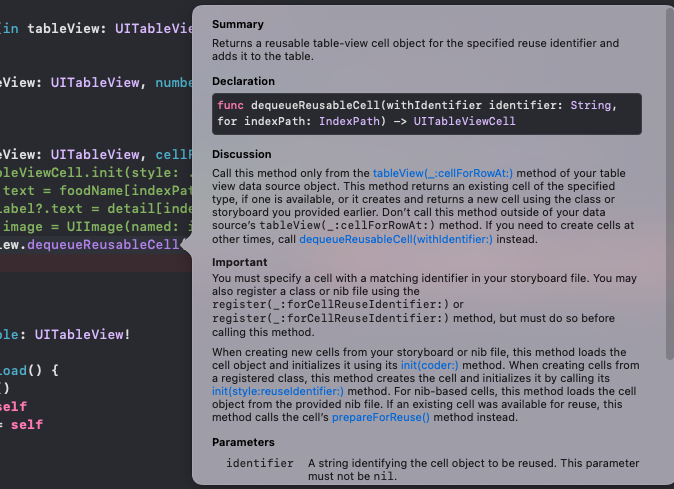 - 설명: 특정 행에 대한 셀을 반환합니다. 이 메서드는 테이블 뷰의 각 셀을 구성하는 데 사용됩니다.