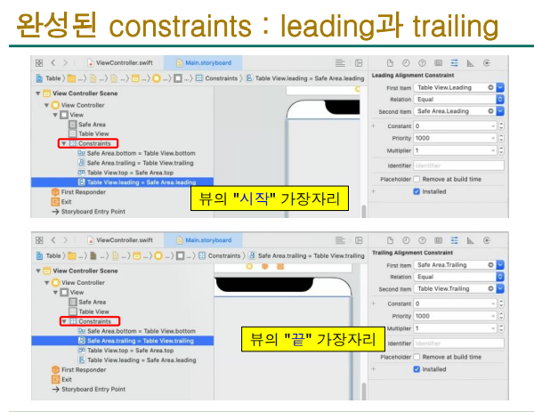 왼쪽을 leading 오른쪽을 trailing이라고 해요 생소하지만 위아래는 top bottom이라서 외우기 쉬워요