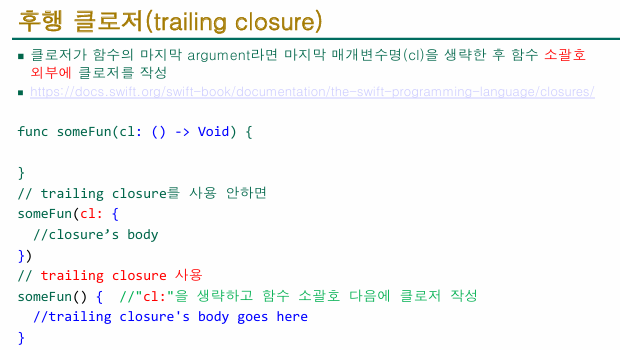 후행클로저(trailing closure) 예