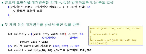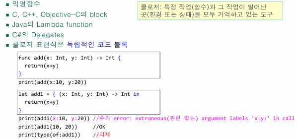 - Swift의 함수는 1급 객체이다.
