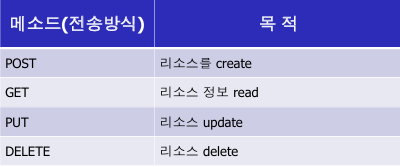 - GET (가져오기), POST (생성), PUT (수정), DELETE (삭제)