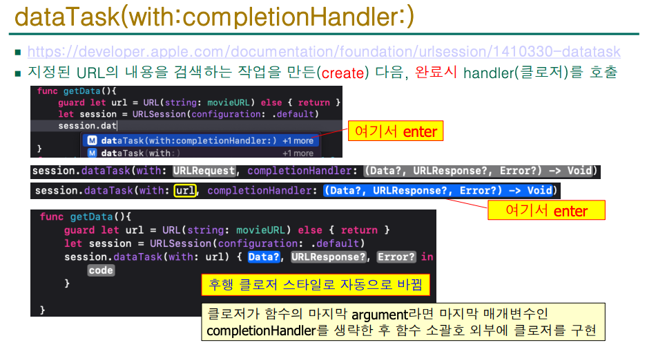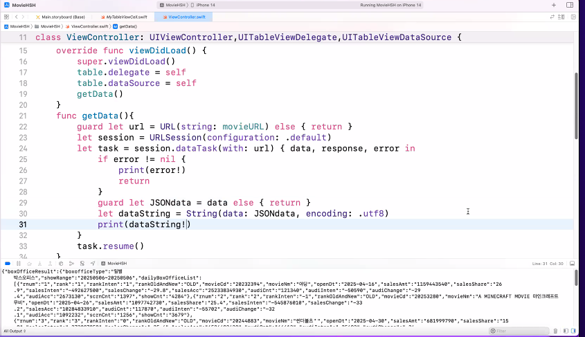 옵셔널을 해제하여 dataString을 출력해주면 터미널창에 데이터들을 불러오는것을 확인 할 수 있어요